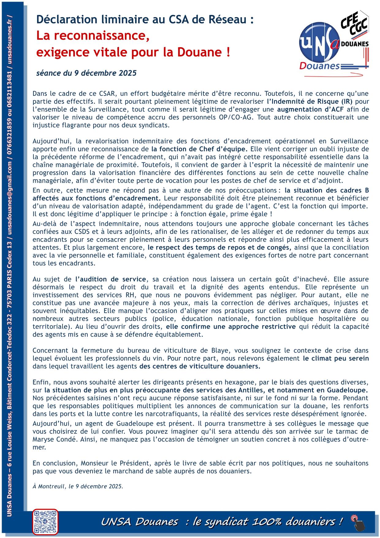 Comité Social d’Administration de Réseau du 09 décembre 2025 (Déclaration liminaire commune) Posted on 9 décembre 2025 by admin