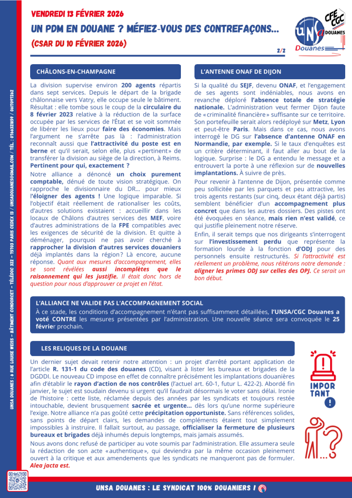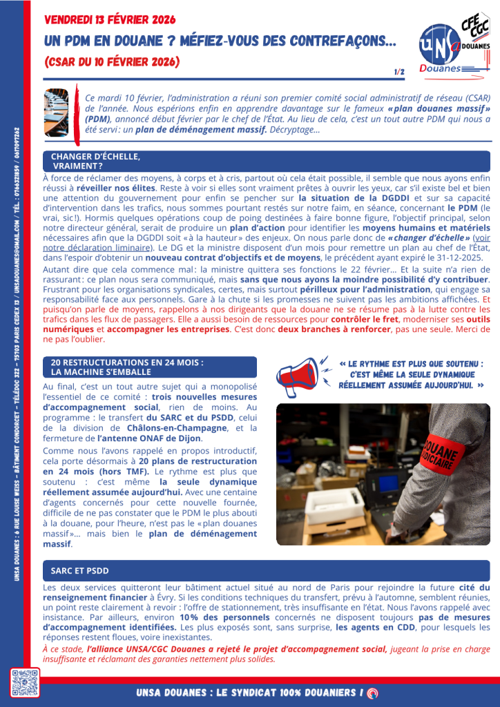 Comité Social d’Administration de Réseau du 10 février 2026 (déclaration liminaire commune) Posted on 10 février 2026 by admin